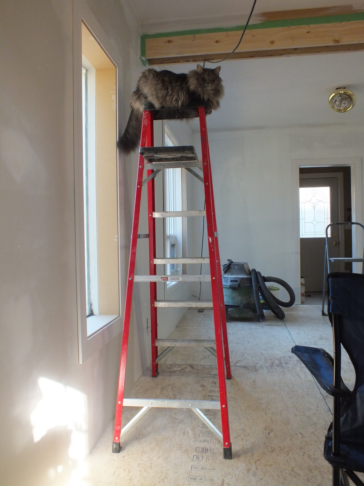 Always looking for the highest place to perch on, Diago climbed the step ladder like a pro!